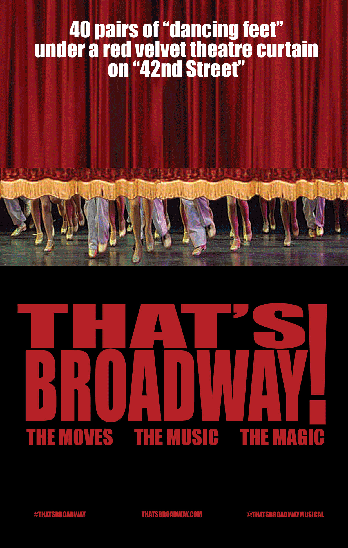 What's your favorite number from your favorite musical? A dancer in a red leotard, singing and dancing her heart out to get back on the stage... 20 pairs of tap-dancing feet under a red velvet theatre curtain... Three sailors in New York for just one night looking for love... Binge on Broadway and see over 20 of your favorite numbers in one evening.THAT'S BROADWAY! is a celebration of Broadway's greatest song and dance number ... a joyous...sexy...thrilling combination of Broadway's best dancers and its finest musicians performing numbers from all your favorite musicals in one exciting evening. These are the show-stopping moments that have become iconic; they are the original song and dance numbers you immediately remember when you think of 42nd Street... West Side Story...Grand Hotel...Pippin...or A Chorus Line. The numbers are performed by 20 of Broadway’s best triple-threat singer/dancers, joined by extraordinary guest stars and a spectacular orchestra for an evening of unforgettable Broadway entertainment. It’s exciting, sexy, and ridiculously entertaining for the entire family and perfect for international audiences as well.. COMING TO BROADWAY FOR 2025! |